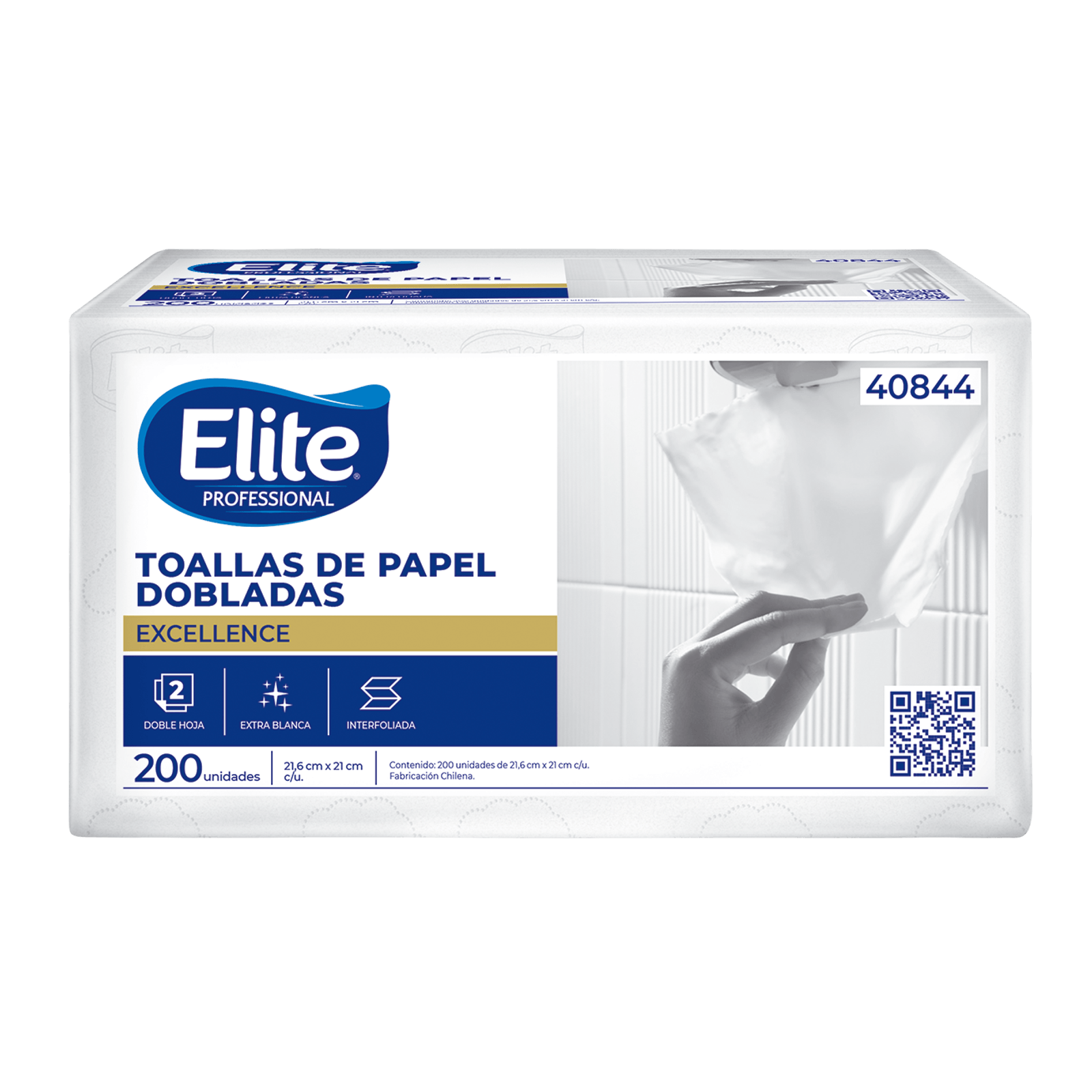 Toalla Interfoliada Elite Professional D/H 200 Hojas 21.6cm x 21cm. Ideal para secado eficiente, con hojas resistentes y absorbentes para mayor higiene.